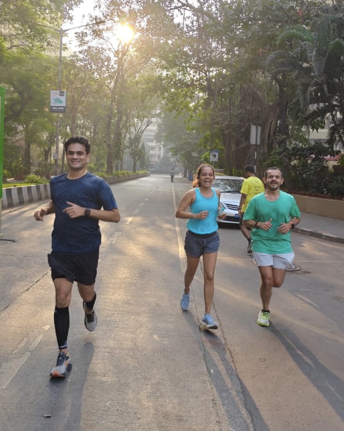This is the best Sunday to be running in Bombay. Everyone is out on the road doing their longest run on the actual route. It was comforting to see the familiar faces and very encouraging to see so many new faces. As we passed the same people twice- once at the Dadar/Mahim end and the other somewhere along Marine Drive, we acknowledged that we are all running a similar distance. Enthusiastic shouts, energetic high fives, cheeky comments, banal banter, witty wisecracks and of course, shining smiles fill the air. The atmosphere was festive.