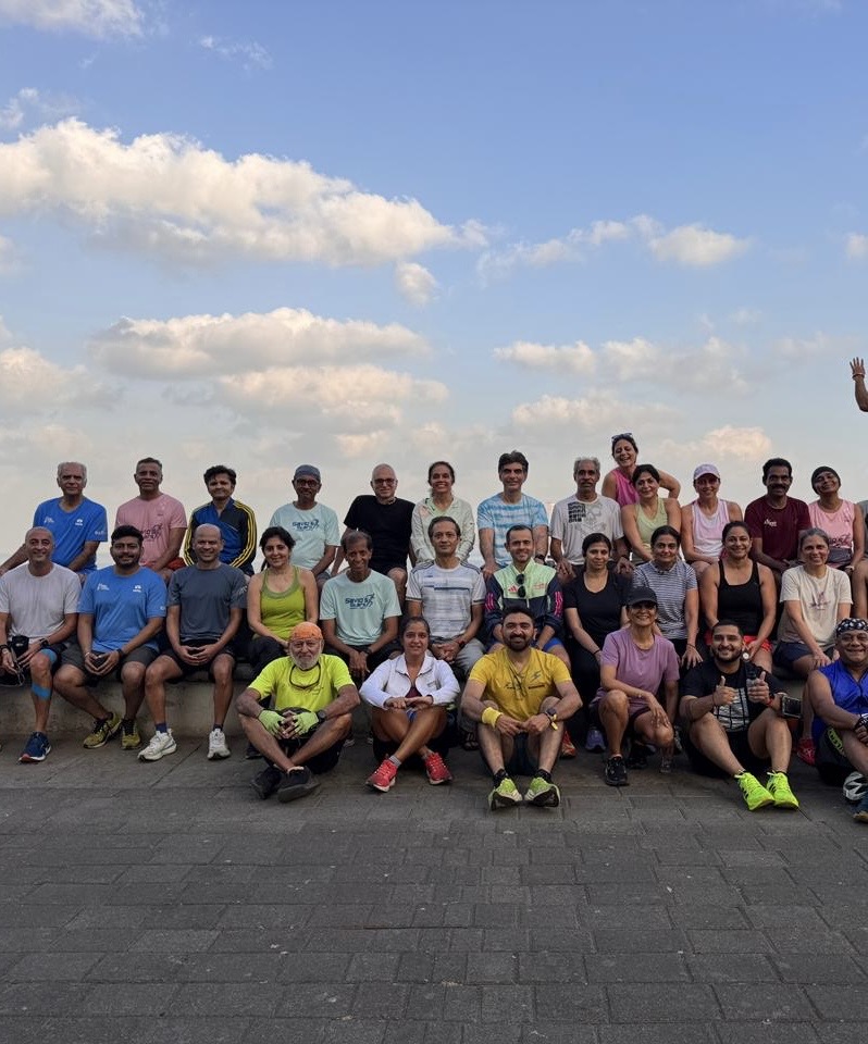 We warmed up well. It was a small group. We lined up, our watches beeped in unison, and off we were.The first group stuck together for about 500m.Then the speedy A and K broke away. Savio’s little coterie of 4/5 was going strong. I checked my watch- and realised- too fast for me. Parin and I slowed down and stayed together for the first 5km. Minimal conversation. Comfortable rhythm. I did not need music.